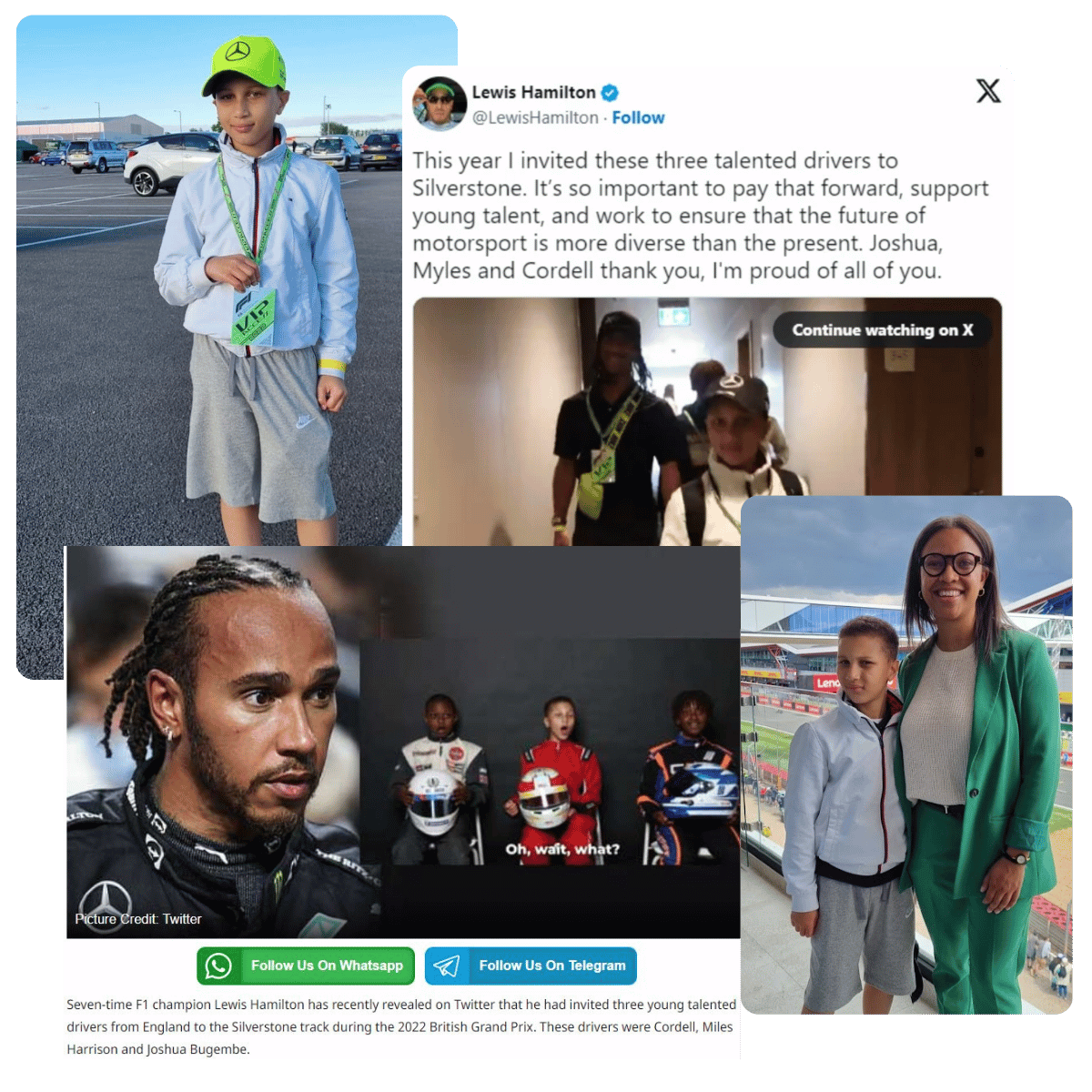 In 2022, I was invited by Lewis Hamilton to attend the British Grand Prix as part of his mission to promote diversity in motorsport, an experience that gave me a deeper insight into life at the highest level of racing. Since then, I’ve continued building my own journey through competitive owner-driver championships, earning podiums and recognition for consistency, pace, and determination both on and off the track.